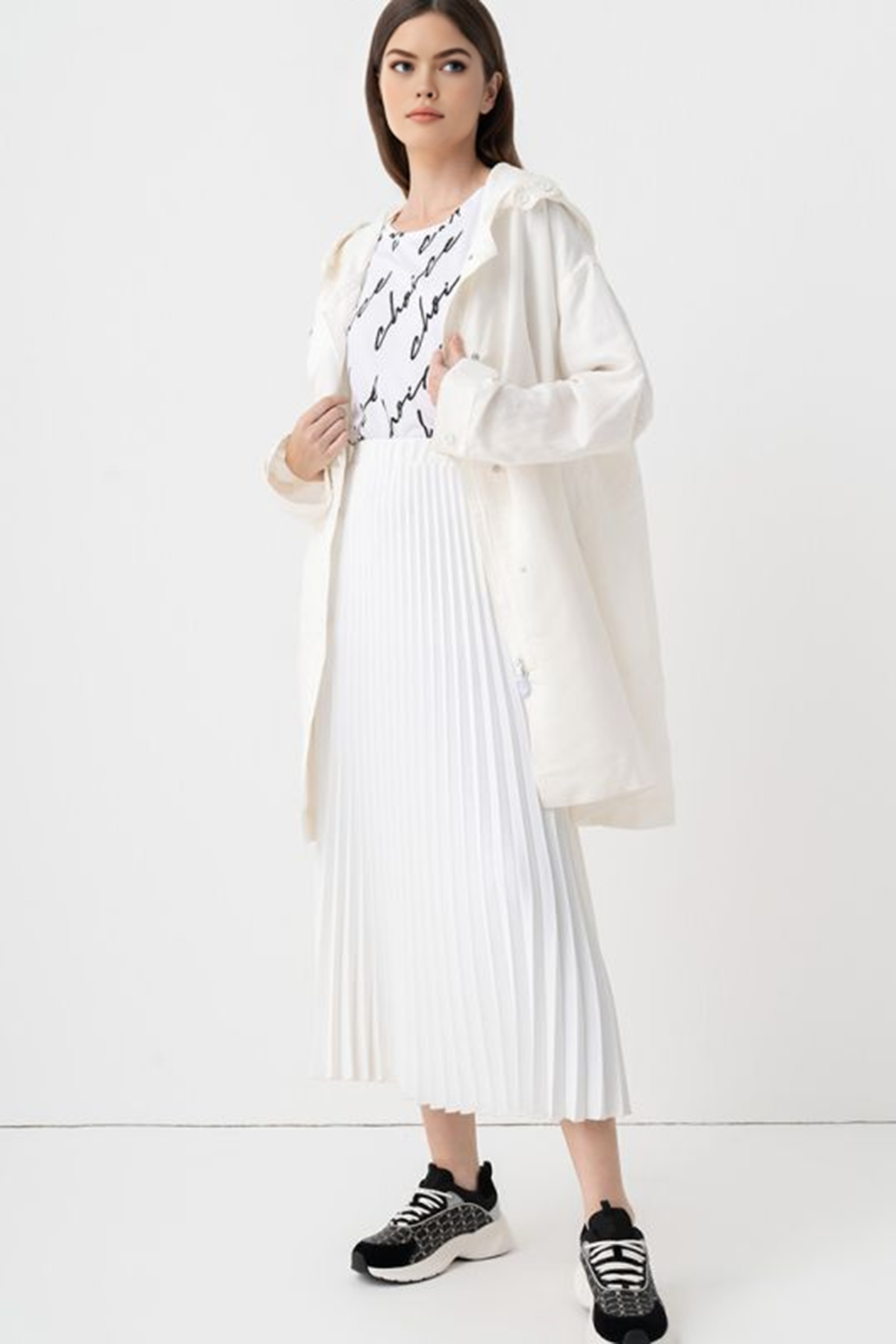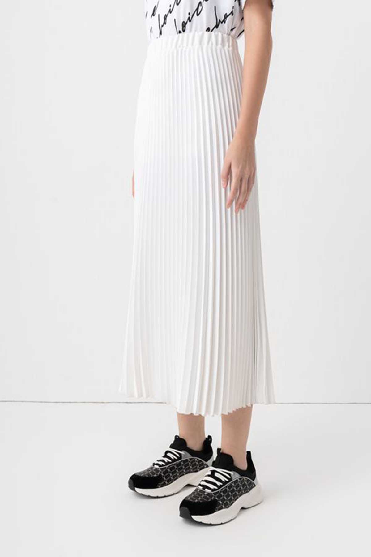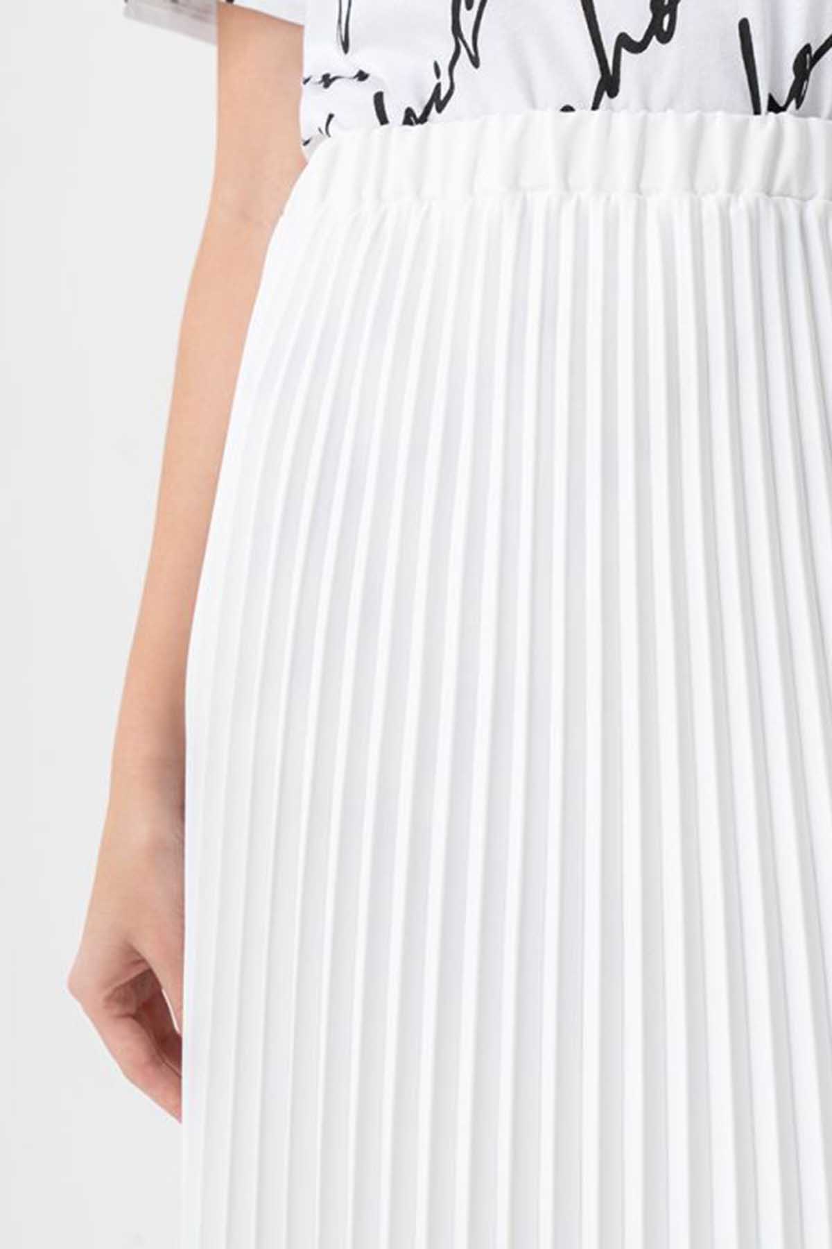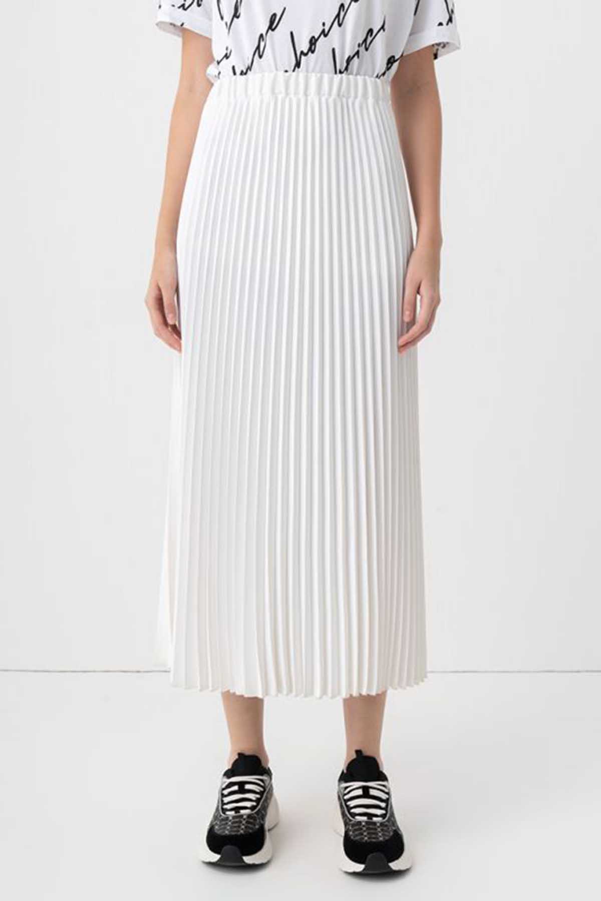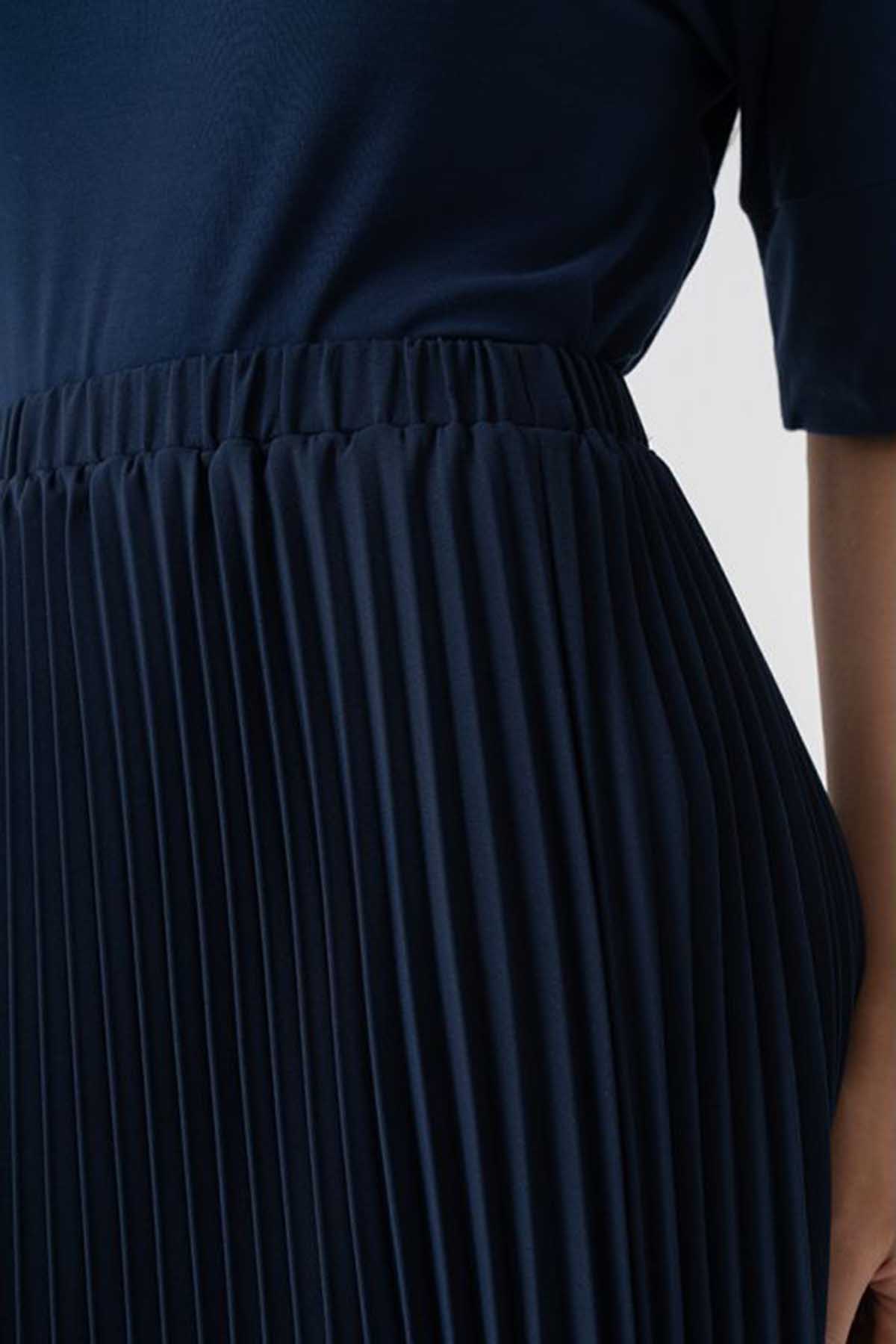 Lend yourself a classy look this season with this Skirt. It will keep you comfortable and relaxed throughout the day. Style: Skirt Occasion: Casual, Evening, Party Design: Solid, Pleated Closure: Elastic Waistband Length: Mid-Calf Length Material: 95% Polyester, 5% Elastane