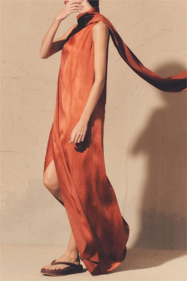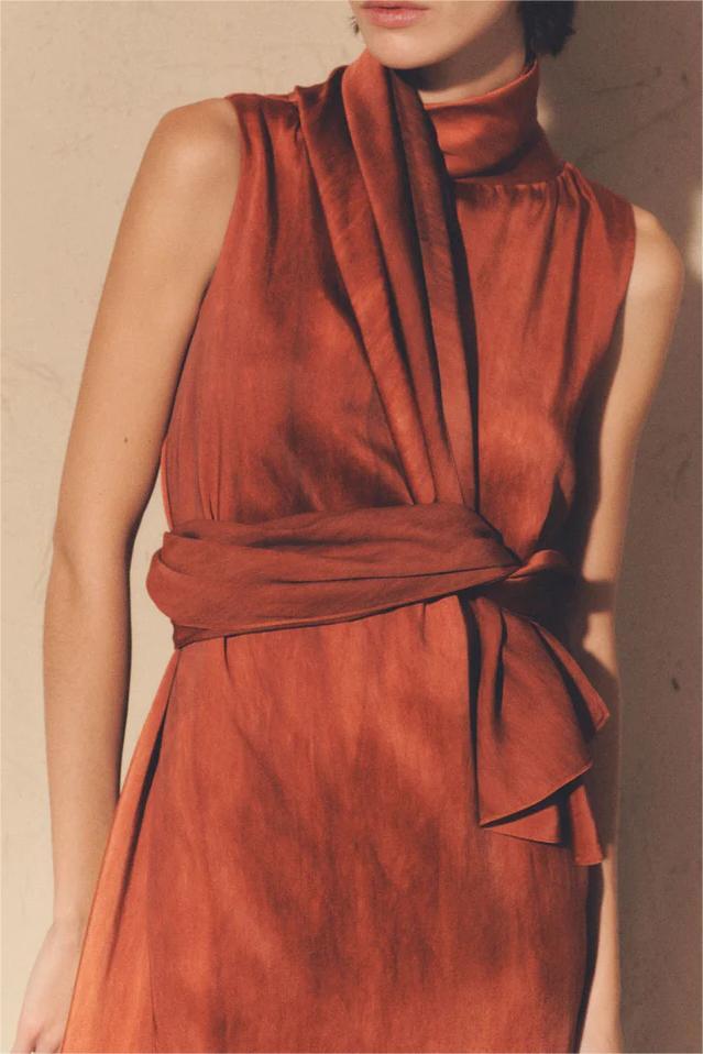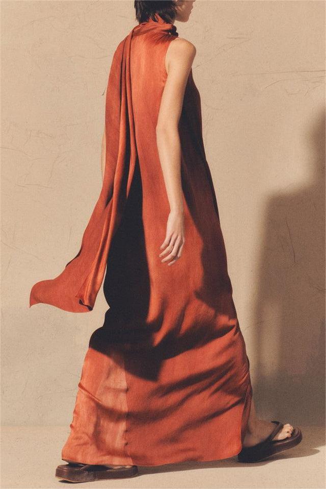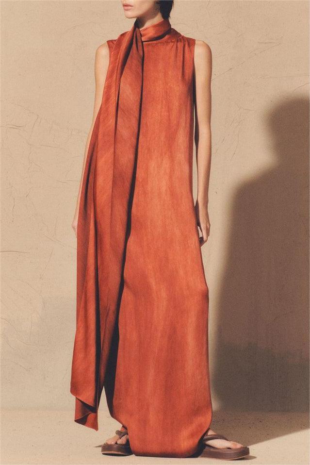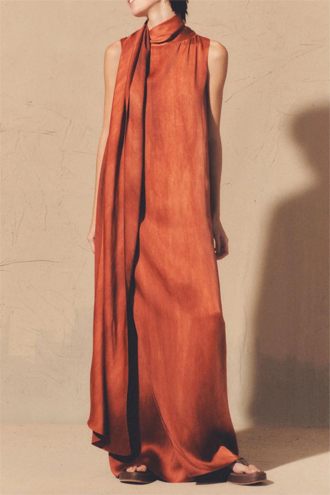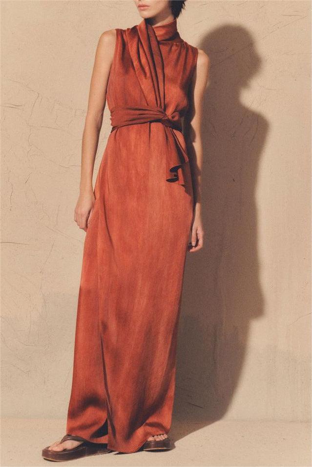 Casual Solid Color Mock Neck Sleeveless Tie Maxi Dress