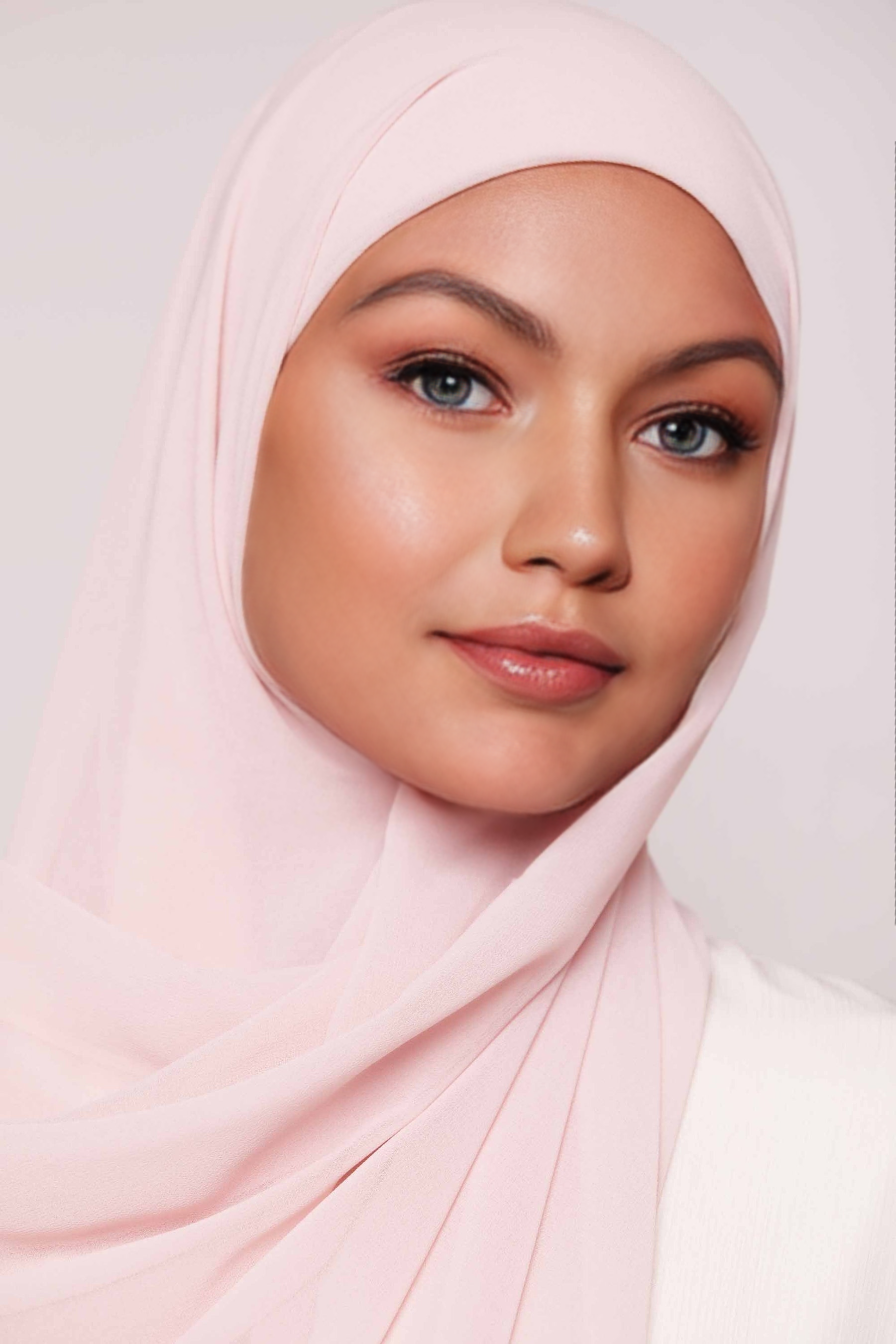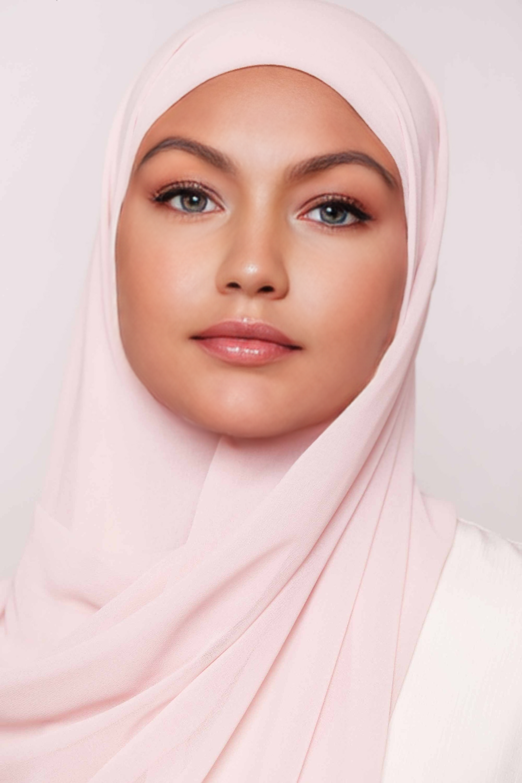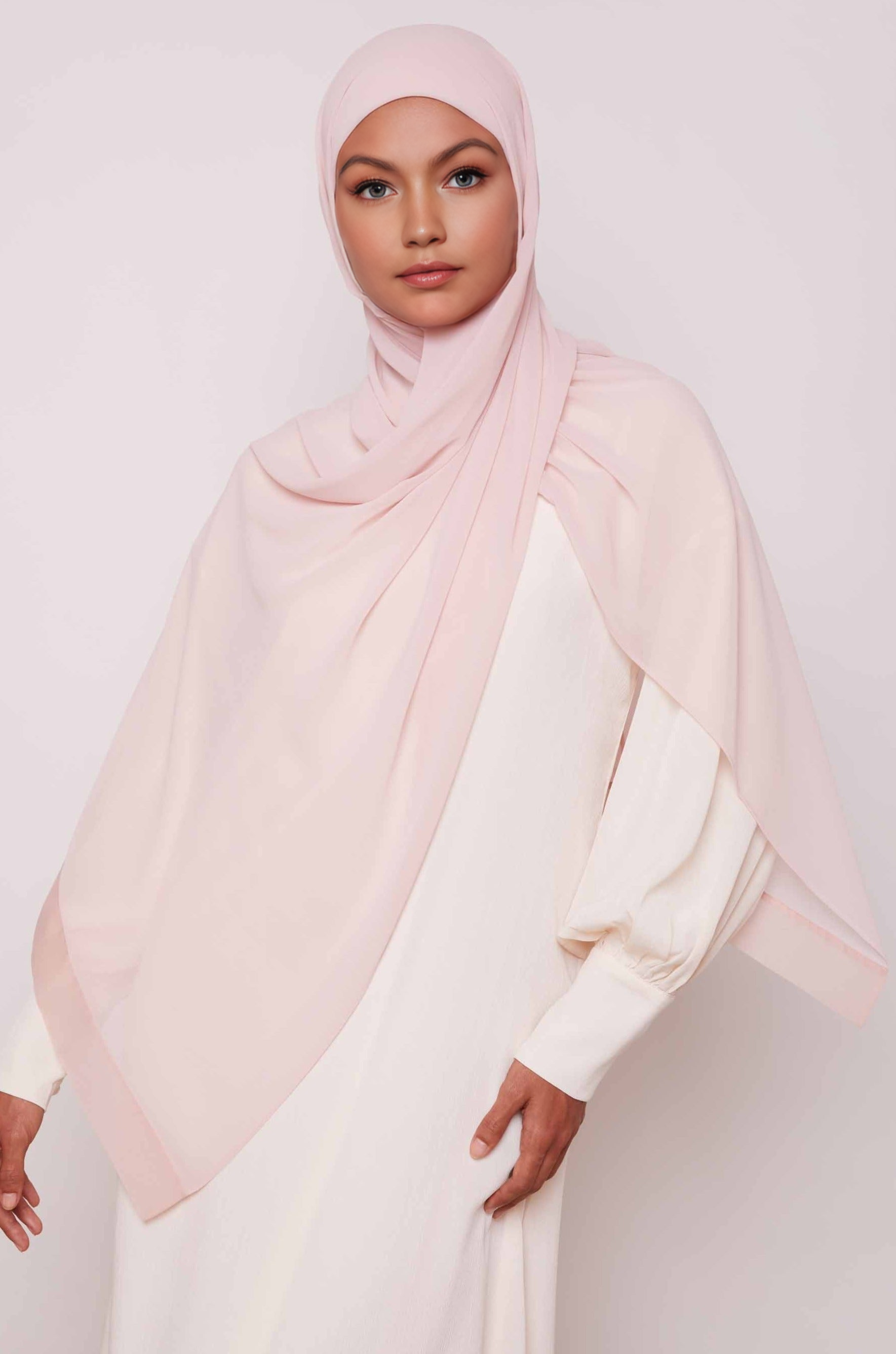 This chiffon hijab features a lightweight chiffon material which is slightly textured to the touch to decrease slippage and an organza trim.