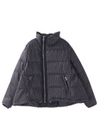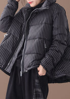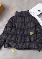 DIY Black Striped zippered Button Winter Duck Down Coats