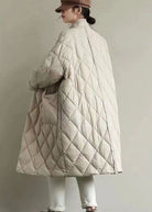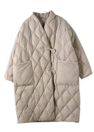 Elegant Apricot V Neck Pockets Fine Cotton Filled Puffers Jackets Winter