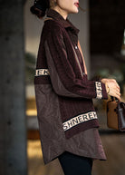 Elegant Chocolate Peter Pan Collar Knit Patchwork Fine Cotton Filled Shirt Top Winter