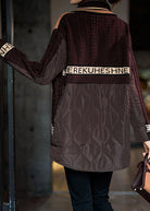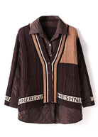 Elegant Coffee Peter Pan Collar Knit Patchwork Fine Cotton Filled Shirt Top Winter