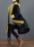 Elegant hooded large hem Fashion crane coats yellow silhouette outwear
