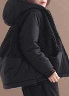 Fashion Black hooded Patchwork Zippered Long Sleeve Winter Coat