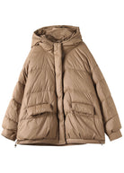Fashion Khaki Hooded Zippered Pockets Winter Down Coat Long sleeve
