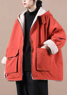 Fashion Orange hooded zippered Pockets Loose Winter parkas Coat