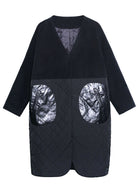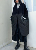Fine Black Woolen Patchwork PU Pockets Winter Cotton Parka coat