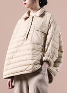 Fine khaki down coat trendy plus size snow jackets lapel pockets women winter outwear