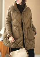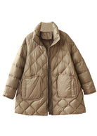 Fine Khaki Zip Up Oversized Thick Big Pockets Duck Down Puffer Jacket Winter
