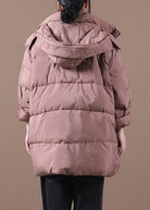 Fine plus size snow jackets pink hooded zippered goose Down coat