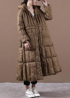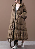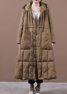 Fine plus size Winter Winter overcoat chocolate hooded pockets goose Down coat