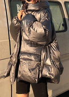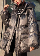Fine silver gray down coat winter plus size womens parka hooded zippered Fine winter outwear