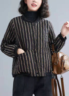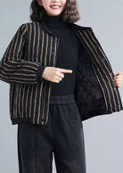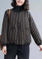 Fine Striped Zippered Pockets Winter Cotton Coats Long sleeve