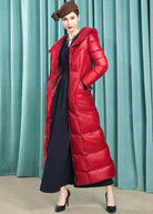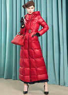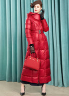French Red Hooded Sashes Thick Lengthen Fine Cotton Filled Parka Winter