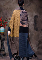 French Yellow Chocolate Asymmetrical Patchwork Fine Cotton Filled Coats Winter