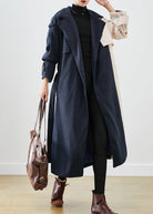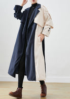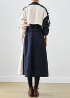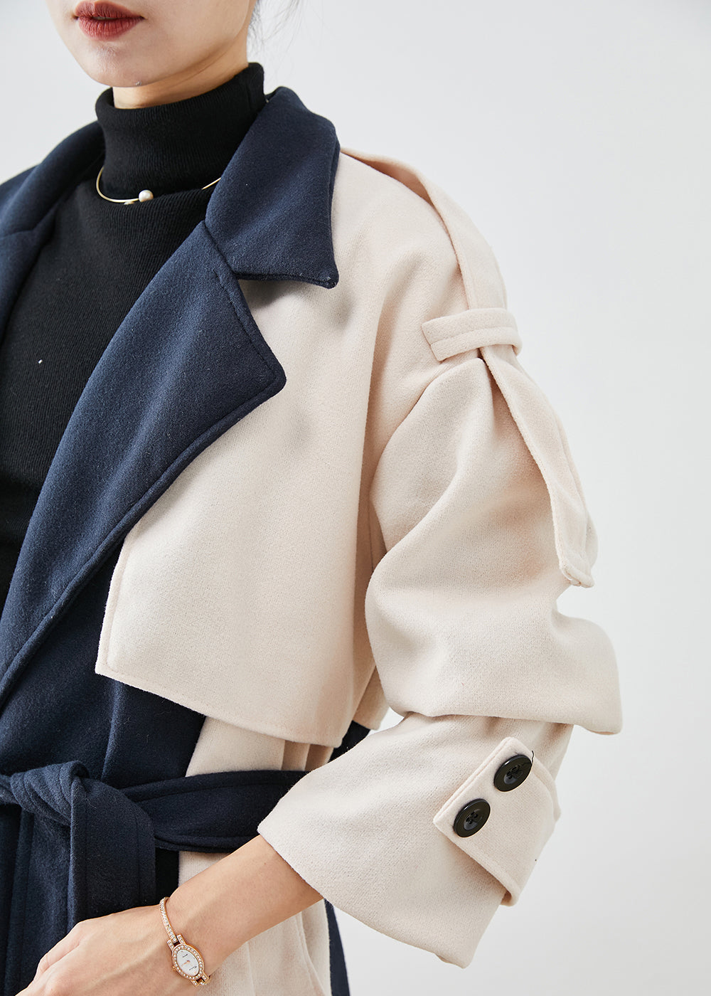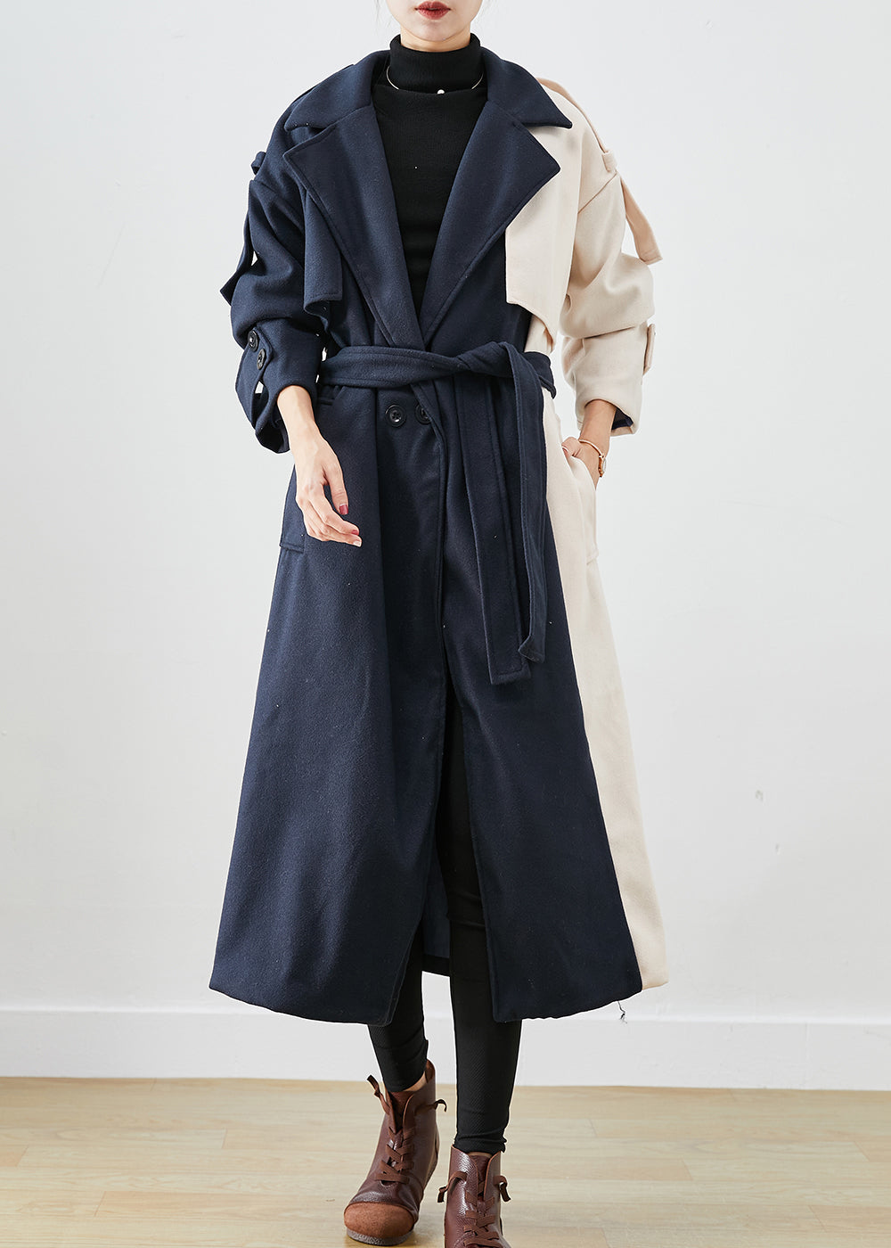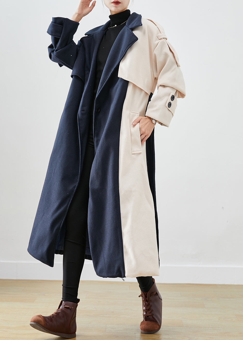 Handmade Navy Asymmetrical Patchwork Woolen Trench Coats Fall