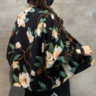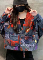 Hot Orange V Neck Pockets Loose Print Winter Cotton Coat