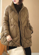 Italian Chocolate Stand Collar Zip Up Pockets Duck Down Puffers Jackets Winter