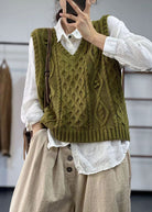 Italian Green V Neck Chunky Oversized Cable Knit Vest Winter