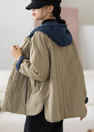 Italian Khaki Hooded Patchwork Fine Cotton Filled Witner Coat