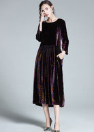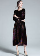 Italian Multi O Neck Patchwork Wrinkled Velour Long Dress Spring