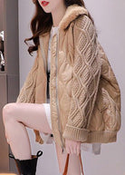 Khaki Fur Collar Zippered Knit Patchwork Parka Winter
