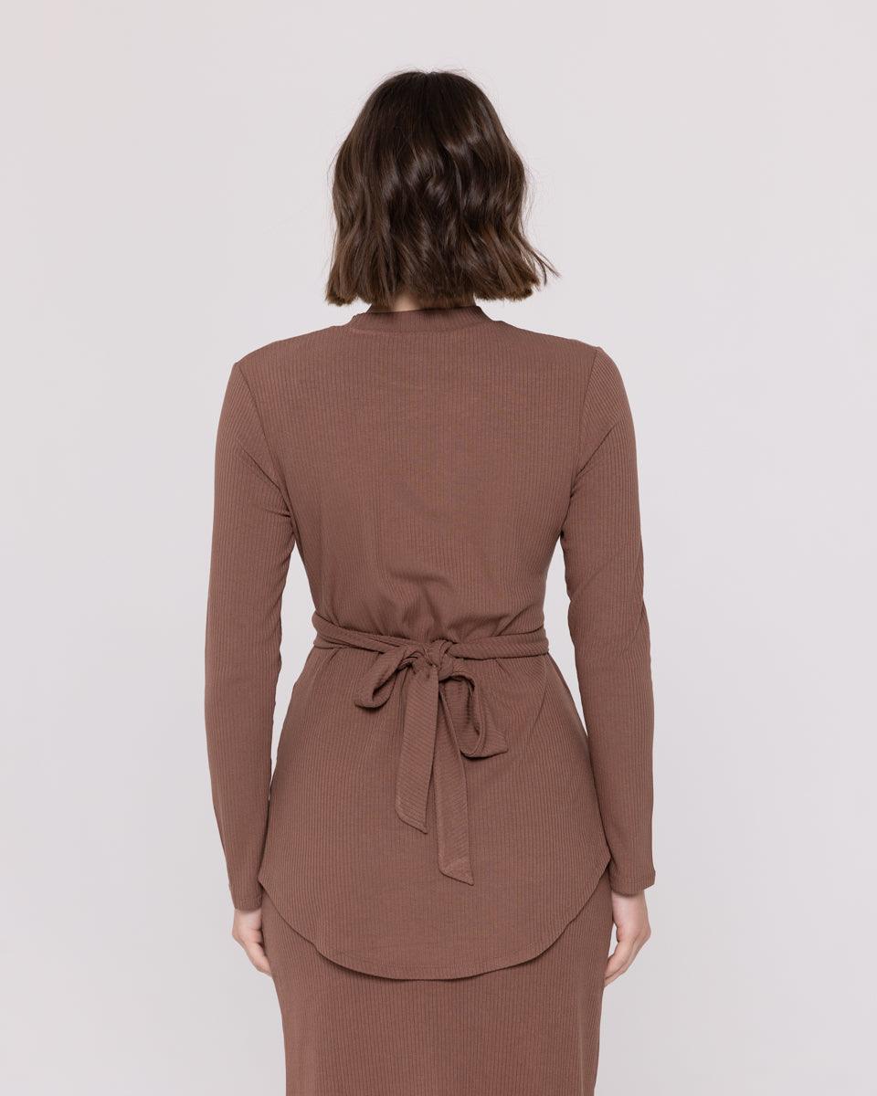 The 'Knot so basic' top is the perfect everyday brown top with a little oomph. It taps into HelloFatima's chic aesthetic with its soft fabric, slimming cut and unique waist detail. Style it with the matching 'Everyday' brown skirt and minimal accessories for a coordinated everyday edit.