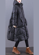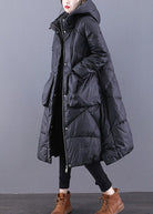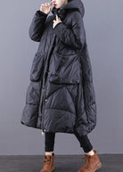 Loose Black Hooded Pockets Duck Down Winter down coat