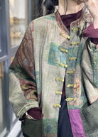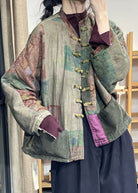 Loose Green Oriental Buttpn Patchwork Corduroy Pockets Fine Cotton Filled Coats Winter