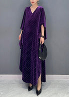 Loose Purple Asymmetrical Dot Patchwork Velour Long Dresses Fall