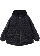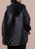 Luxury Black hooded zippered Patchwork Winter Winter Coats Long sleeve