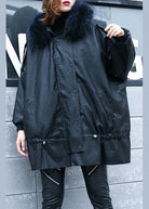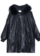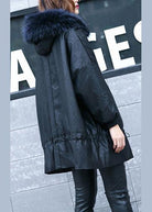 Luxury black overcoat trendy plus size winter jacket hooded fur collar overcoat