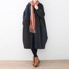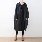 Luxury blue black striped down coat oversized woolen down overcoat Fine patchwork winter outwear