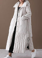 luxury Plus Size Winter Overcoat Beige Hooded Large Pockets Coat