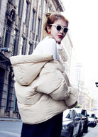 Luxury plus size women parka overcoat beige hooded thick duck down coat