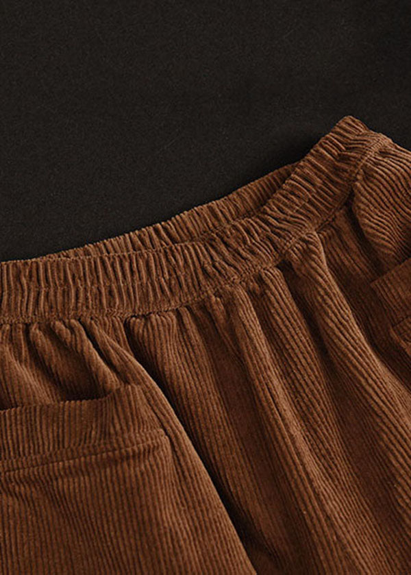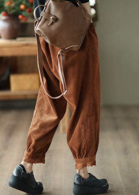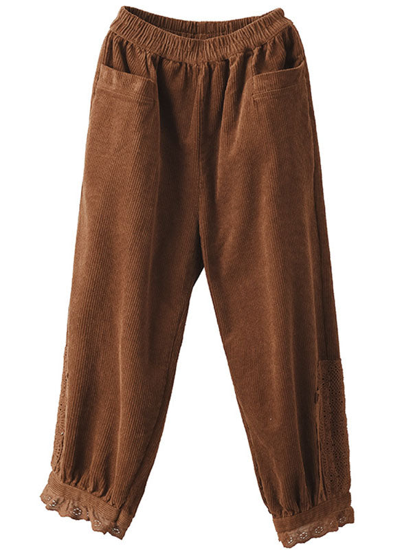 Modern Caramel Elastic Waist Lace Patchwork Corduroy Harem Pants Winter