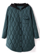 Plus Size Green Hooded Pockets Patchwork Fine Cotton Filled Winter Coats