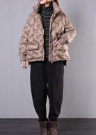 fine khaki coat oversized Jackets & Coats stand collar zippered outwear