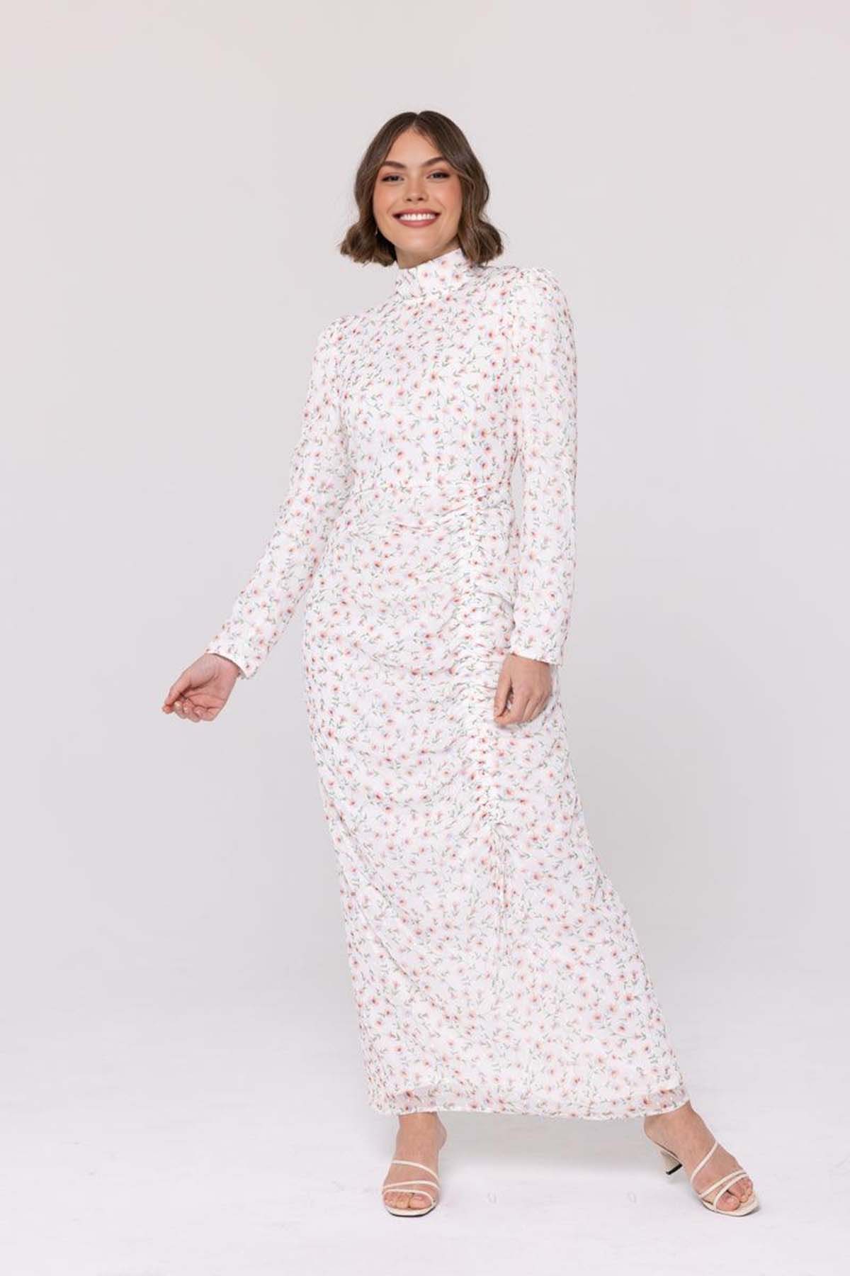 Reminiscent of an English garden in spring, this modest fashion staple features a graceful silhouette and dreamy florals in a quintessential peach hue! Comfy as ever, this fan favourite is perfect for a picnic in the park or brunch with the gals.